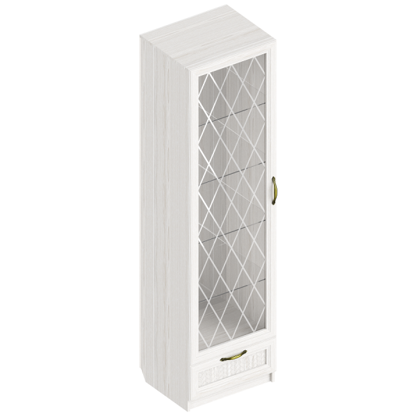 Красивый и функциональный шкаф-витрина Александрия Га-14 станет украшением любой комнаты. Шкаф-витрина не занимает много места,но зато вмещает достаточное количество разнообразных вещей. Что хранить в нем, решаете только Вы. Помимо просторного отсека с полками, который закрывается стеклянной дверкой с пескоструйным рисунком в виде ромбов, модель имеет выдвижной ящик. Модульность набора мебели позволяет создать свой собственный, неповторимый комплект, который идеально впишется в интерьер любого помещения.