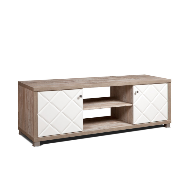 Тумба установлена на шести нерегулируемых опорах. Петли без доводчиков, задняя стенка изготовлена из ХДФ. Дверь изготовлена из МДФ плёночного с эффектом Soft-touch. За дверями съёмные полки. Детали тумбы, крышка, боковые стенки, которые в эксплуатации подвержены механическим повреждениям, облицованы кромкой ПВХ толщиной 2 мм. Тумба комплектуется металлической ручкой со вставкой из стекла напоминающей бриллиант или кристалл. Каркас из ДСП толщиной 32 мм. придает добротности и надёжности конструкции мебели.
