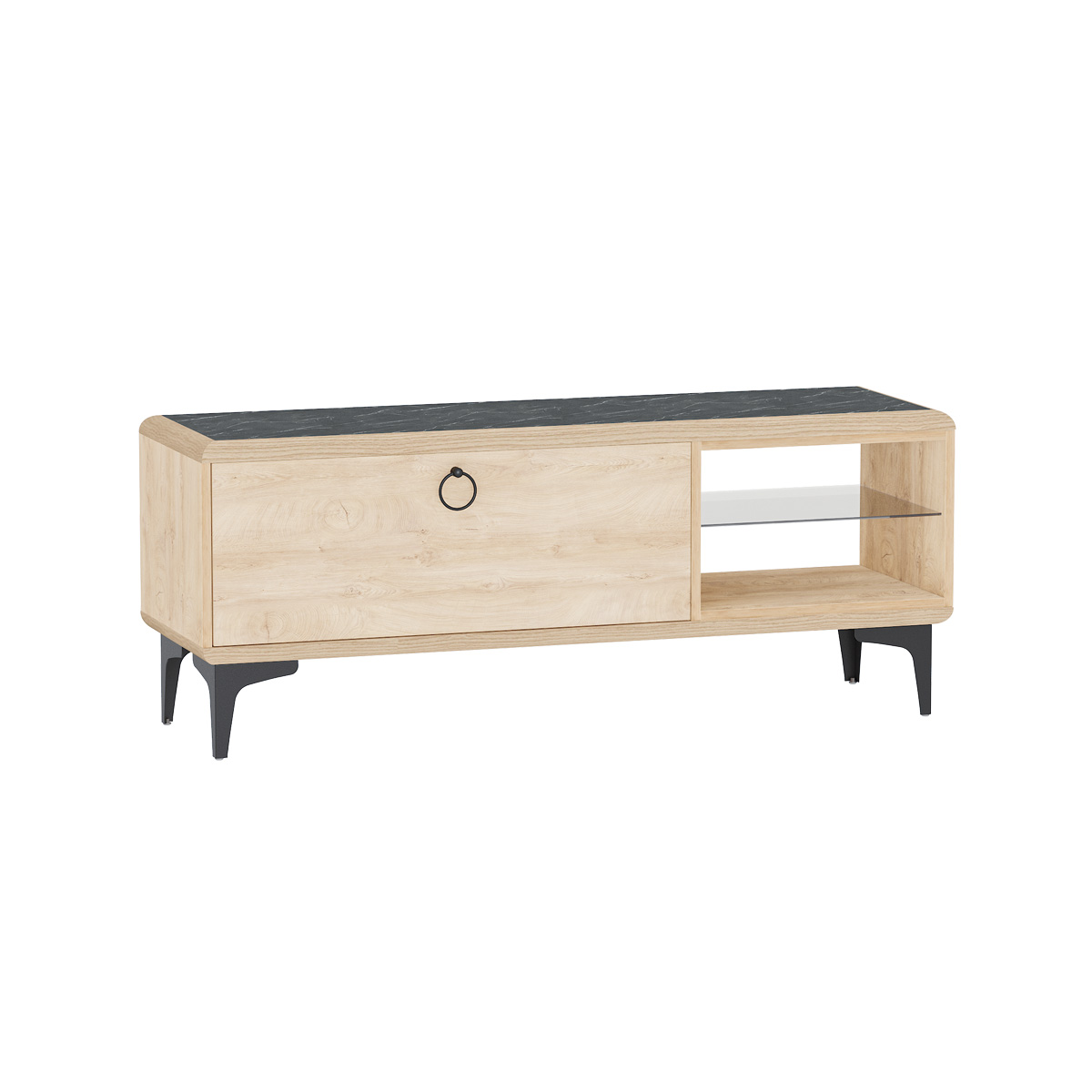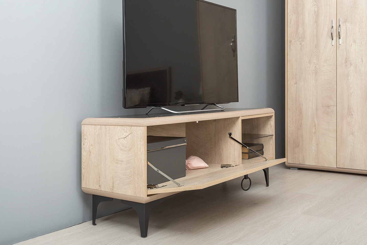 Тумба под ТВ Мальта 13.273 будет отличным дополнением интерьера любой комнаты. Изделие поможет разместить телевизор для более комфортного просмотра новостей, сериалов и различных телепередач. Открытые ниши предназначены для необходимой аппаратуры. А отделения с откидной дверцей пригодится для хранения различных вещей и предметов. Мебель Мальта создаст атмосферу лёгкости, прохлады и чистоты.