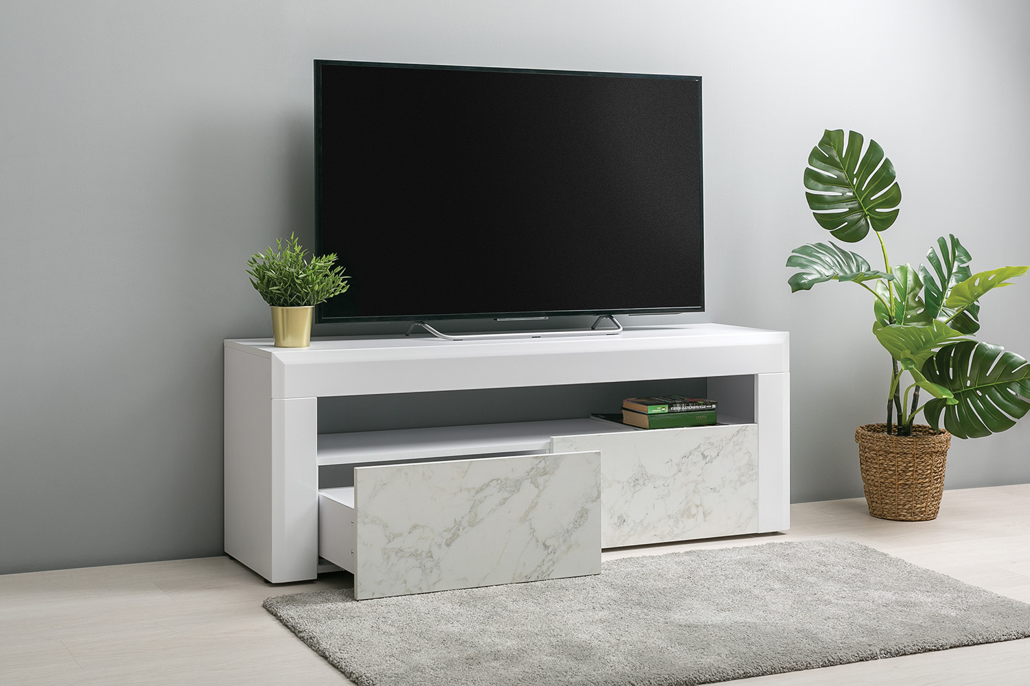 Тумба под ТВ Пьер 13.264 будет отличным дополнением интерьера любой комнаты. Изделие поможет разместить телевизор для более комфортного просмотра новостей, сериалов и различных телепередач. Открытая ниша предназначена для необходимой аппаратуры. А два выдвижных ящика пригодятся для хранения различных вещей и предметов. Направляющие выдвижных ящиков имеют скрытый монтаж и регулировки фасада. Кроме того, они имеют повышенную грузоподъёмность и оснащены доводчиками. Регулируемые опоры позволяют легко компенсировать неровности пола.