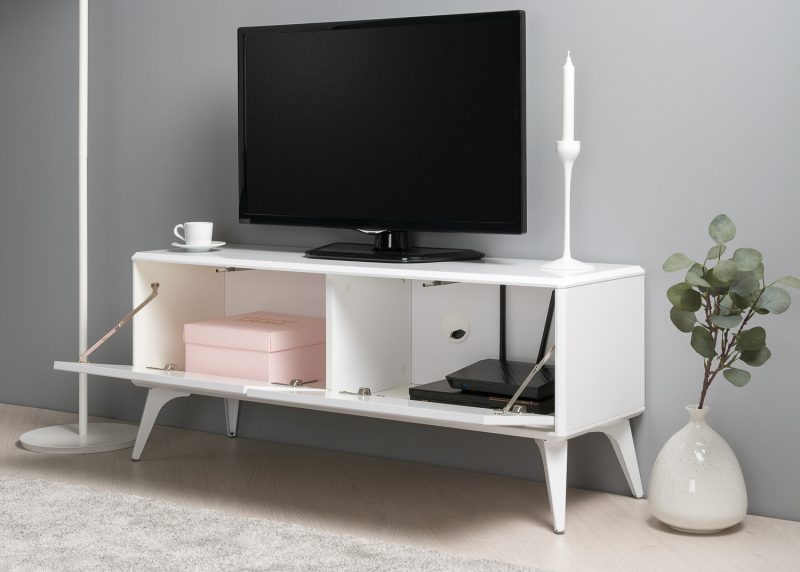 Тумба под ТВ Спейс 13.269 будет отличным дополнением интерьера любой комнаты. Изделие поможет разместить телевизор для более комфортного просмотра новостей, сериалов и различных телепередач. Два отделения, скрытые за откидными дверцами, пригодятся для хранения большого количества различных вещей и предметов. В тумбе предусмотрена система вырезов под провода, что делает установку и подключение техники быстрой, простой и приятной. При этом все лишние провода окажутся скрытыми.