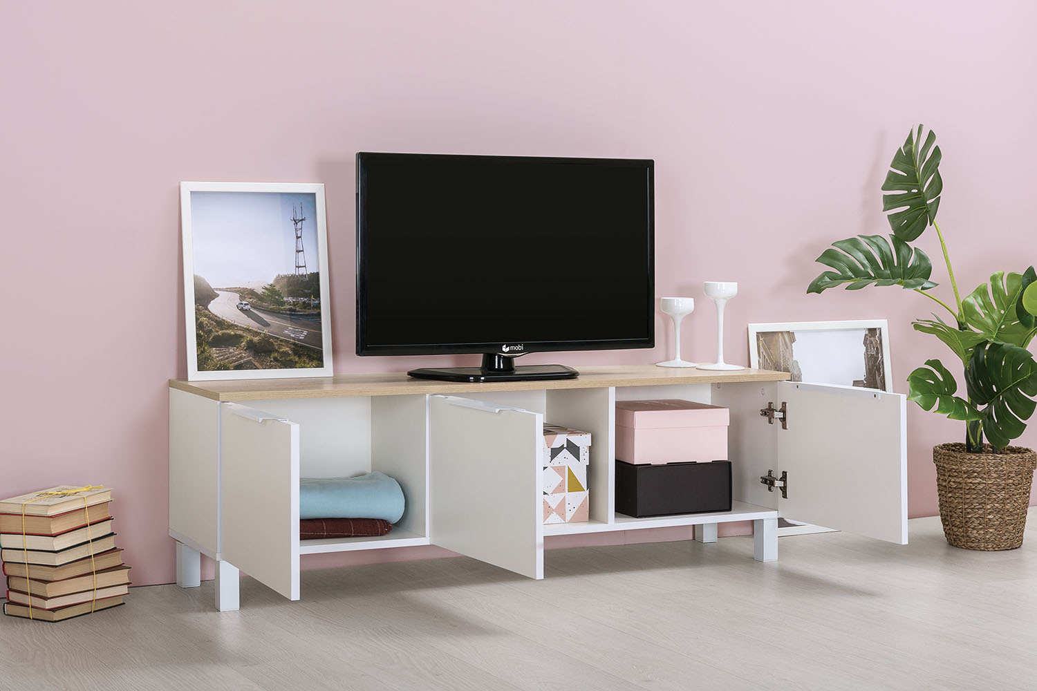 Тумба под ТВ 13.267.01 будет отличным дополнением интерьера любой комнаты. Изделие поможет разместить телевизор для более комфортного просмотра новостей, сериалов и различных телепередач. Полки, скрытые за распашными дверьми, пригодятся для хранения большого количества различных вещей и предметов. Фасады оснащены петлями с доводчиками. Современный стиль изделия дополняют дизайнерские ручки из металла и регулируемые опоры.