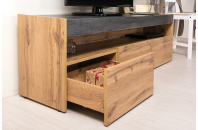 Тумба под ТВ 13.272 будет отличным дополнением интерьера любой комнаты. Изделие поможет разместить телевизор для более комфортного просмотра новостей, сериалов и различных телепередач. Открытая ниша предназначена для необходимой аппаратуры. А вместительные выдвижные ящики пригодятся для хранения различных вещей и предметов. Ящики укомплектованы направляющими скрытого монтажа с доводчиками, которые не видны снаружи, имеют регулировку, закрываются бесшумно и выдерживают нагрузку до 40 кг. Регулируемые опоры легко компенсируют неровности пола.