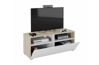 Тумба ТВ «Diamond» тип 6 — удобный и практичный вариант для хранения. Тумба выполнена в современном интерьере с довольно простой и незамысловатой геометрией. Модель оснащена двумя открытыми полками и большой скрытой нишей, которая открывается при помощи дверцы. Внутри за дверцей спрятаны еще несколько полок. На широкой поверхности тумбы можно разместить телевизор, а в нишах и в ящике хранить все необходимые вещи и другую технику.