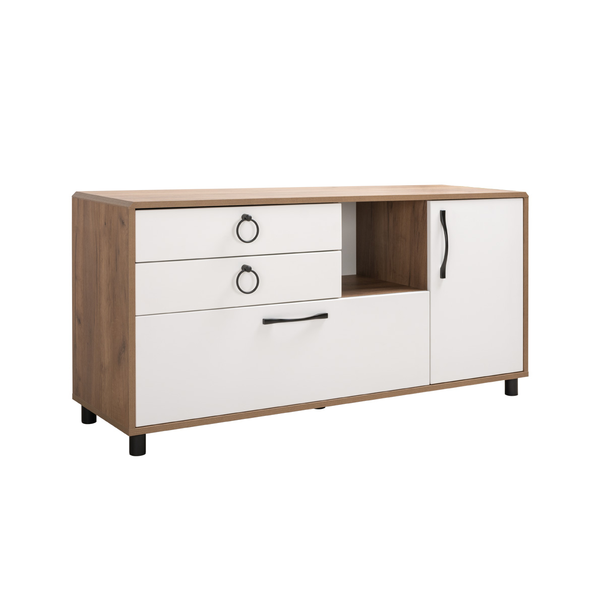 Тумба под ТВ Винтаж 13.283.07 будет отличным дополнением интерьера любой комнаты. Изделие поможет разместить телевизор для более комфортного просмотра новостей, сериалов и различных телепередач. Вместительный выдвижной ящик и полки, скрытые за распашными дверцами, пригодятся для хранения различных вещей и предметов. Регулируемые опоры позволяют легко компенсировать неровности пола. Образ тумбы дополняется интересной и стильной металлической фурнитурой.