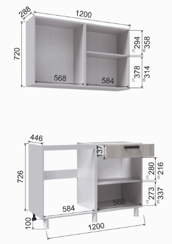Роликовые направляющие обеспечивают плавное и бесшумное открывание ящиков, а петли без доводчика гарантируют долгий срок службы мебели.