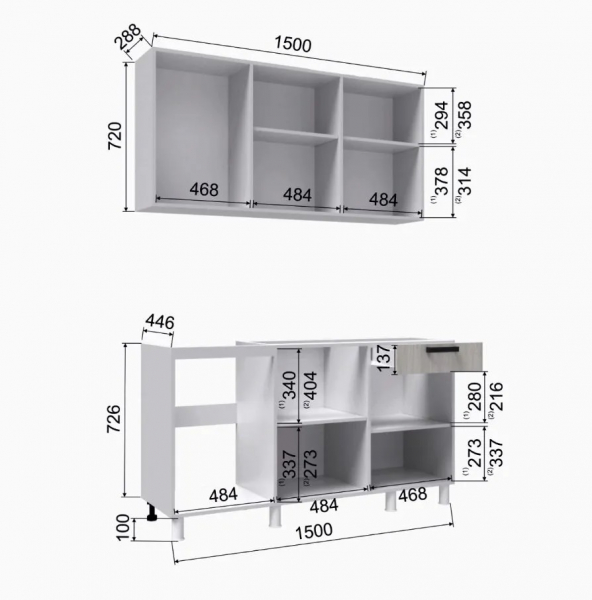 Кухня оснащена удобными и функциональными элементами: выдвижными ящиками, открывающимися в стороны, и полками. Это позволяет максимально эффективно использовать пространство и хранить все необходимые вещи.