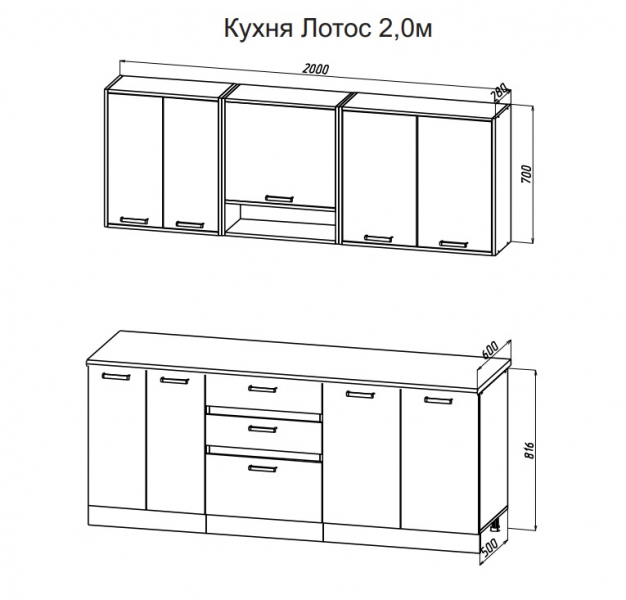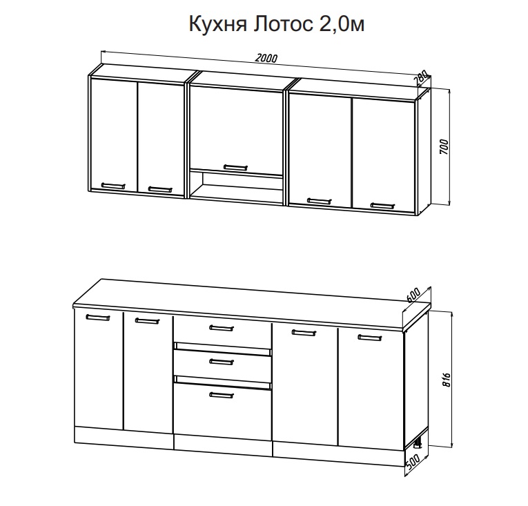 Шкаф верхний под посуду: 600Ш*700В*280Г