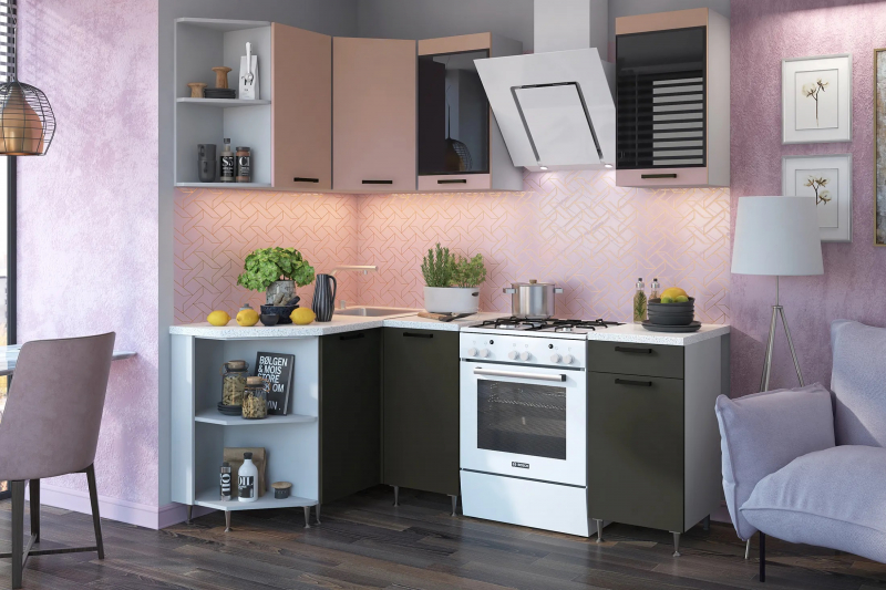 Кухня Техно 1.3 на 1.4 м комп №3 пудр\угольн. софт