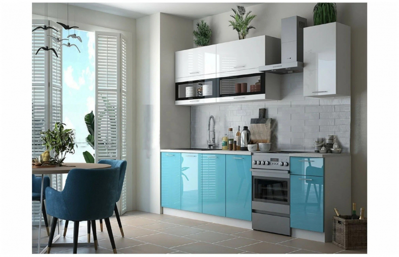 Кухня Техно 2.0 белый гл\бирюза мат\мойка круг