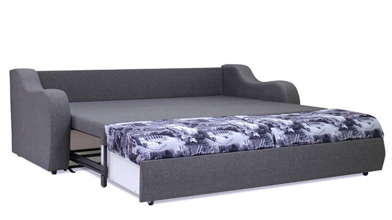 Практичный надежный диван с металлическим механизмом для ежедневного использования. Ортопедическое латное наполнение обеспечивают здоровый сон, образуя ровную просторную спальную зону без стыков и перепадов. В разложенном виде остается планка, которая исключает неприятные соприкосновения со стеной. Модель оснащена двумя ламинированными ящиками для белья, что позволит разместить несколько комплектов постельных принадлежностей. Мягкое и бесшумное раскладывание обеспечивают каучуковые колесики, не повреждает покрытие пола. Конструкция модели позволяет проводить влажную уборку пола не передвигая мебель. Третья выкатная часть механизма за счет укладки приспинных подушек в изножье образует «ЕВРО» спальное место (2000*2100).