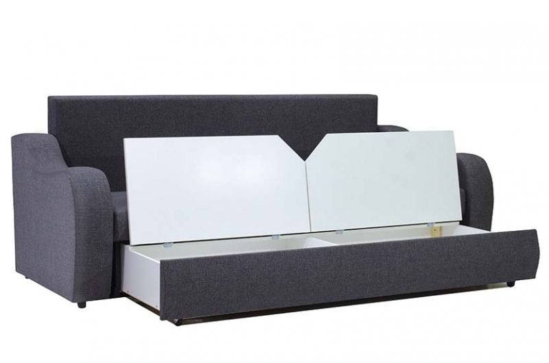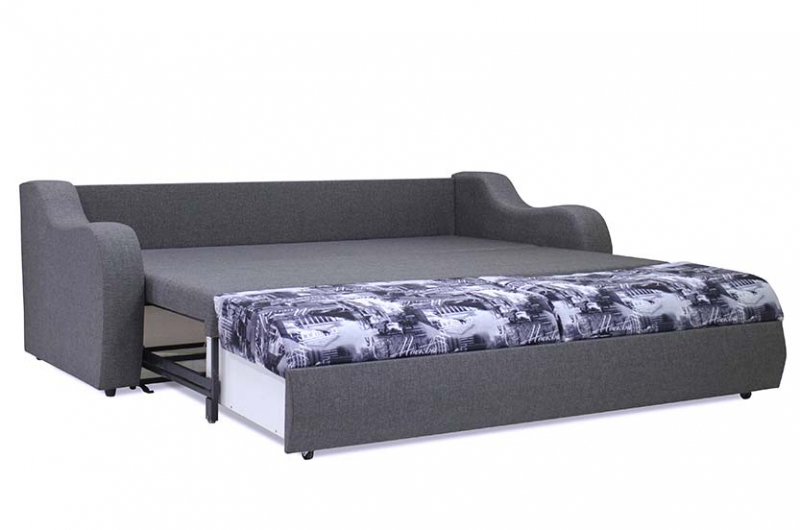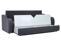 Практичный надежный диван с металлическим механизмом для ежедневного использования. Ортопедическое латное наполнение обеспечивают здоровый сон, образуя ровную просторную спальную зону без стыков и перепадов. В разложенном виде остается планка, которая исключает неприятные соприкосновения со стеной. Модель оснащена двумя ламинированными ящиками для белья, что позволит разместить несколько комплектов постельных принадлежностей. Мягкое и бесшумное раскладывание обеспечивают каучуковые колесики, не повреждает покрытие пола. Конструкция модели позволяет проводить влажную уборку пола не передвигая мебель. Третья выкатная часть механизма за счет укладки приспинных подушек в изножье образует «ЕВРО» спальное место (2000*2100).