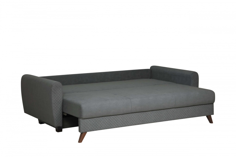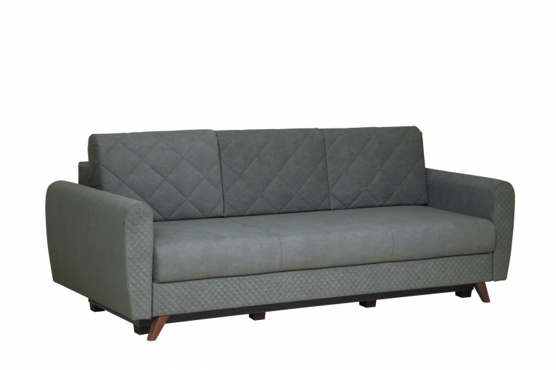 Диван - кровать 3- х местный Эдвин (2 думки) - это надежная и максимально удобная еврокнижка на шагающем механизме тик-так. Сдержанная простота элегантного стиля поддержана стегаными элементами на деталях дивана. Цветовые решения практичных велюров отлично сочетаются с декорами плитных материалов, применяемых в производстве нашей фабрики. Легкость в ежедневной эксплуатации обеспечивает надежный механизм тик-так, который быстро и непринужденно превращает наш диван в диван кровать с просторным и ровным спальным местом.