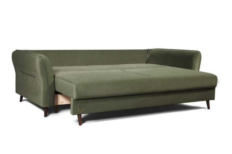 Несмотря на то что диван выглядит довольно компактным, он оснащен вместительной нишей для хранения. Раскладывая мебель, вы моментально получаете доступ к дополнительным или основным наборам постельного белья.