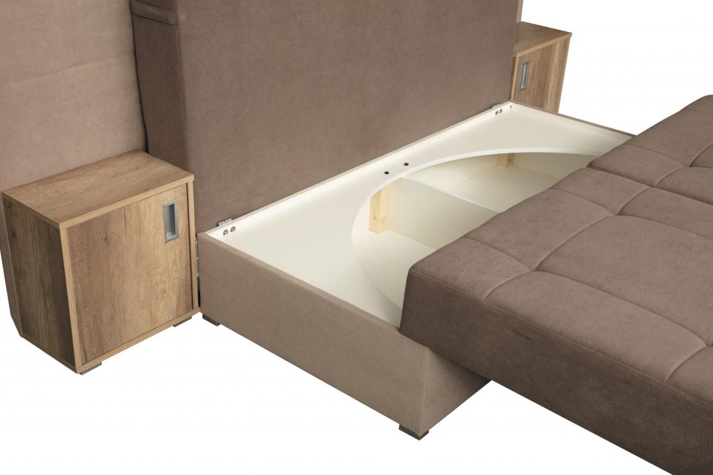 Диван-кровать Даллас станет дополнением уютного интерьера комнаты. Теперь у вас появится достаточно комфортное место, где вы сможете расслабиться и немного отдохнуть после трудных дней или провести свободное время просматривая телевизор или читая увлекательную книгу. При необходимости и благодаря выкатному механизму раскладки, диван трансформируется в удобную кровать с широким спальным местом. Наполнителем выступает зависимый пружинный блок, который придает дивану эластичность, долгий срок службы и способность восстанавливать начальную форму. Предусмотрен ящик для постельных принадлежностей.