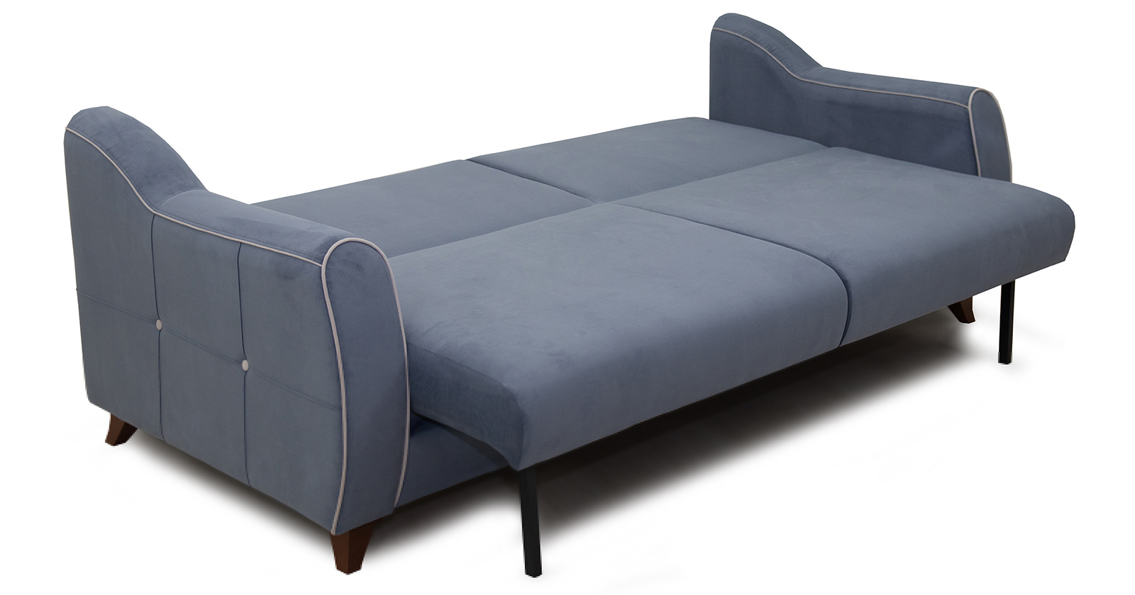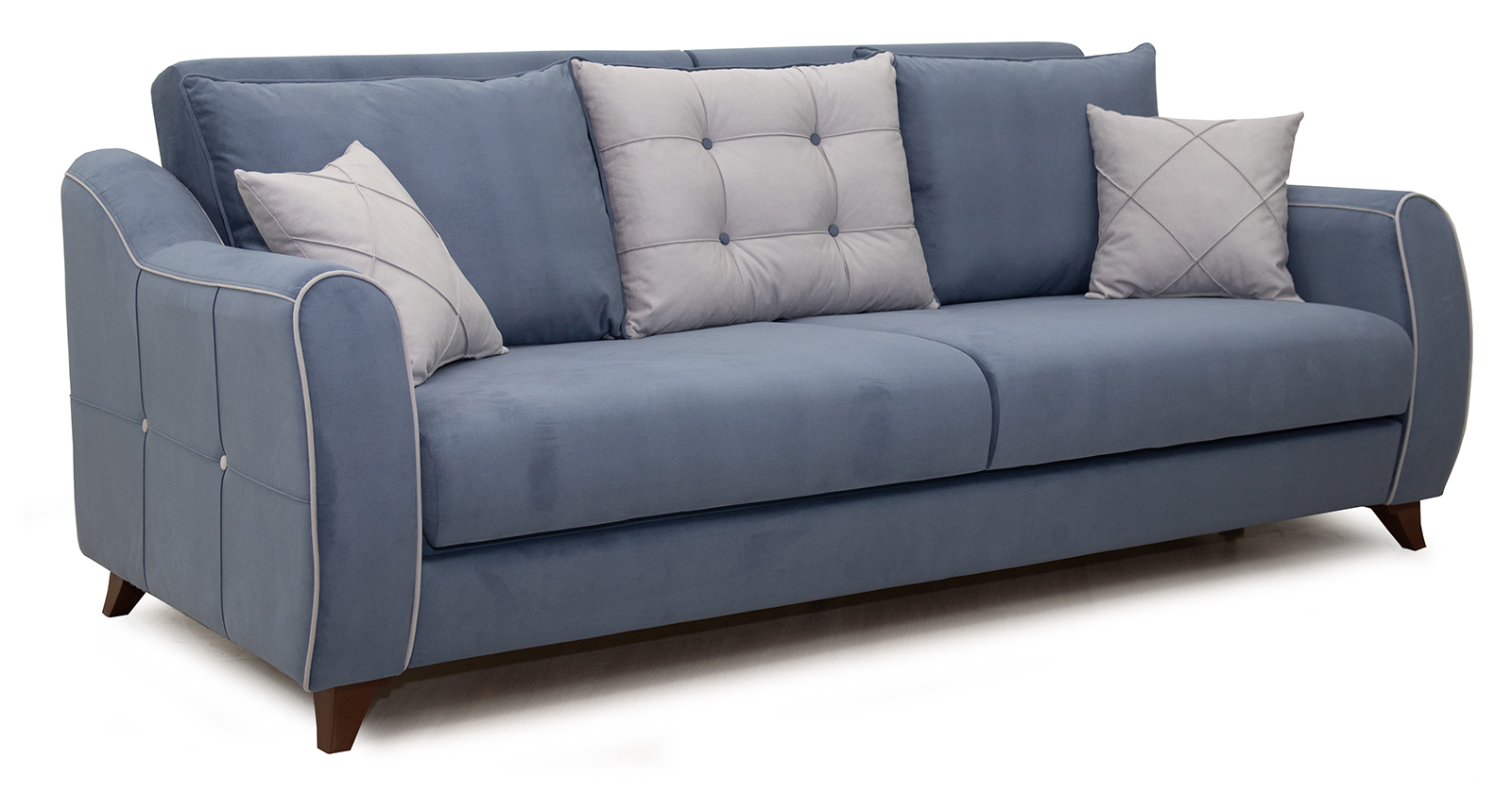 Удобный раздвижной диван-книжка Френсис с подушками и бельевым ящиком. Простой механизм трансформации - книжка с 0 стенкой - легко и быстро превращает диван в большое и комфортное спальное место без отодвигания от стены. Для этого сиденье с помощью потайной ручки выдвигается вверх и вперёд. Под диваном есть вместительный бельевой ящик для хранения постельных принадлежностей или вещей. Диван украшен подушками с контрастной обивкой, декоративным кантом, пуговицами и отстрочкой.Диван-кровать Френсис станет замечательным предметом мебели вашей гостиной комнаты или спальни. Благодаря лаконичному и стильному дизайну модель сможет легко вписаться практически в любой интерьер.