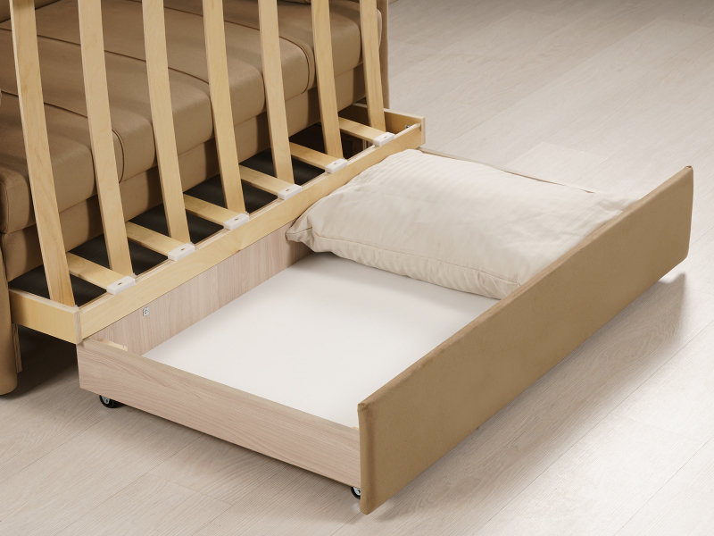 Диван-кровать Мелани - компактный современный диванчик. Скругленные подлокотники с кантами подчеркивают эргономичность модели. Простой и надежный механизм трансформации на каждый день обеспечит удобным спальным местом ребенка или подростка. Может использоваться в качестве гостевого спального места для взрослого. Размер сп. места 195 х 120 см, есть небольшой бельевой ящик. Опоры - цвет черный, круглые, высота 25 мм., выполнены из высококачественного пластика. Прочность конструкции ножек обеспечена ребрами жесткости и внутренним креплением под фурнитуру.