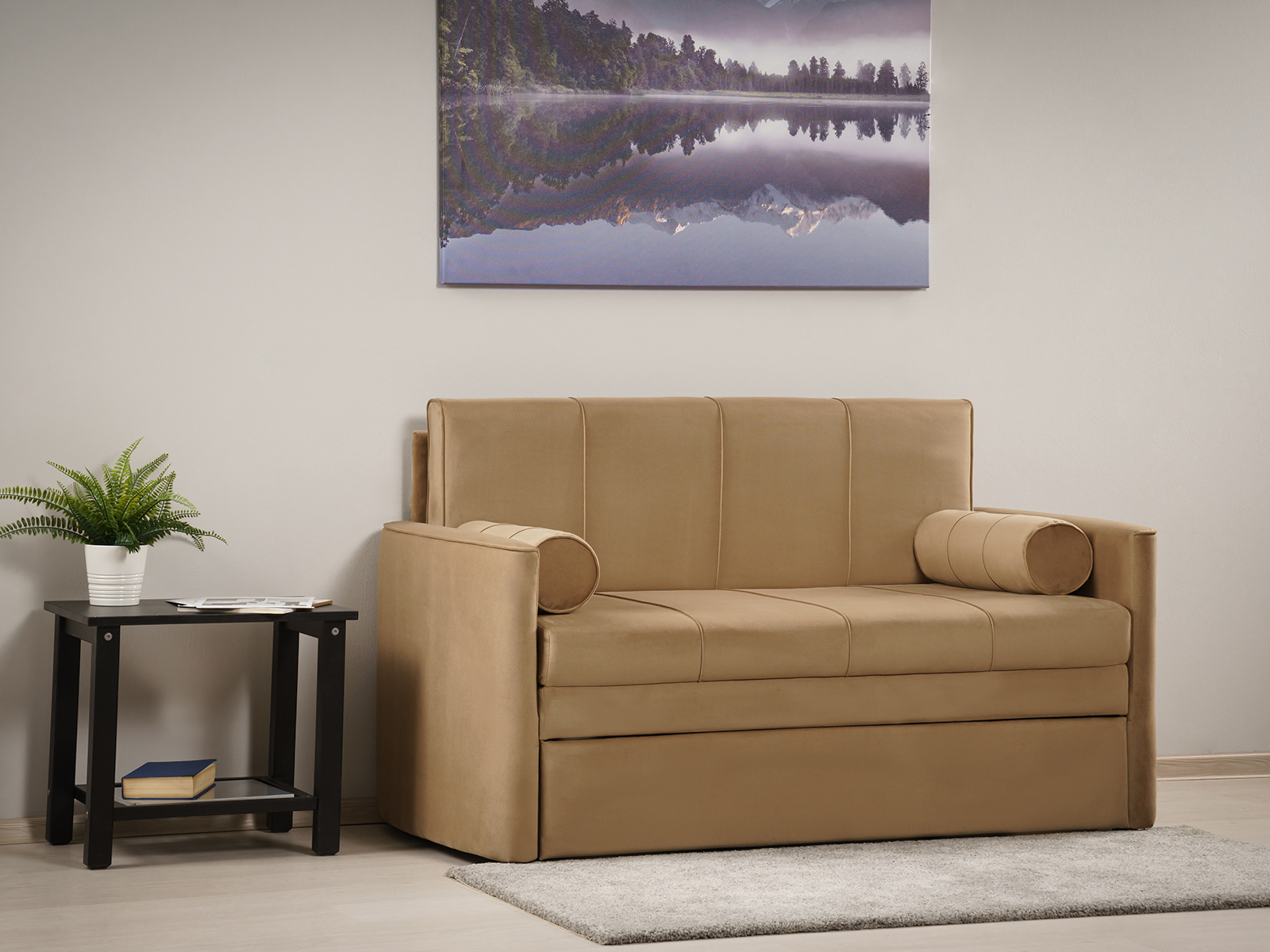 Диван-кровать Мелани - компактный современный диванчик. Скругленные подлокотники с кантами подчеркивают эргономичность модели. Простой и надежный механизм трансформации на каждый день обеспечит удобным спальным местом ребенка или подростка. Может использоваться в качестве гостевого спального места для взрослого. Размер сп. места 195 х 120 см, есть небольшой бельевой ящик. Опоры - цвет черный, круглые, высота 25 мм., выполнены из высококачественного пластика. Прочность конструкции ножек обеспечена ребрами жесткости и внутренним креплением под фурнитуру.