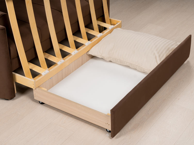 Диван-кровать Мелани - компактный современный диванчик. Скругленные подлокотники с кантами подчеркивают эргономичность модели. Простой и надежный механизм трансформации на каждый день обеспечит удобным спальным местом ребенка или подростка. Может использоваться в качестве гостевого спального места для взрослого. Размер сп. места 195 х 120 см, есть небольшой бельевой ящик. Опоры - цвет черный, круглые, высота 25 мм., выполнены из высококачественного пластика. Прочность конструкции ножек обеспечена ребрами жесткости и внутренним креплением под фурнитуру.