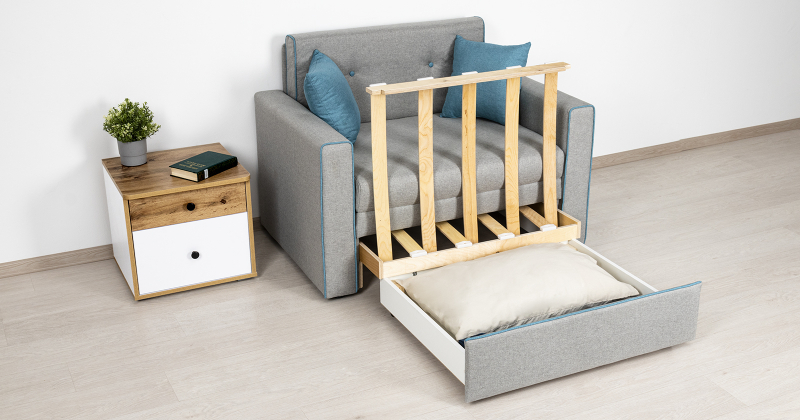 Диван- кровать Найс - компактное современное решение для гостиных, квартир-студий, детских и подростковых комнат. Может использоваться в качестве постоянного спального места для детей и подростков или гостевого спального места взрослого.