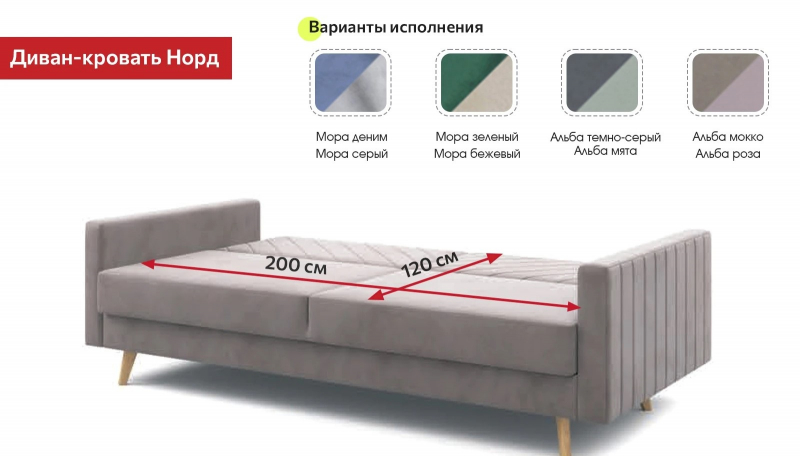 Диван-кровать НОРД с вместительным бельевым ящиком будет хорошим решением для гостиной или спальной комнаты.