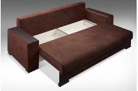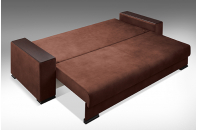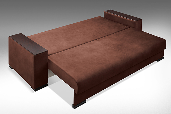 Большой удобный диван с  лаконичными формами.  Такой диван великолепно будет смотреться в гостиной.В этой модели дивана продумано все до мелочей для комфортного отдыха. Глубокое сиденье и две большие подушеки  позволяют занять наиболее удобную позу при сидении. На широкие подлокотники с деревянными накладками можно без риска ставить чашки с напитками, а также класть другие предметы, которые хотелось бы держать под рукой.В основании расположен блок независимых пружин, которой обладает ортопедическим эффектом, поэтому спать на таком диване очень удобно. Диван имеет большее спальное место, доступ к которому осуществляется с помощью удобного механизма трансформации “Еврокнижка”.