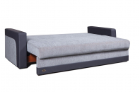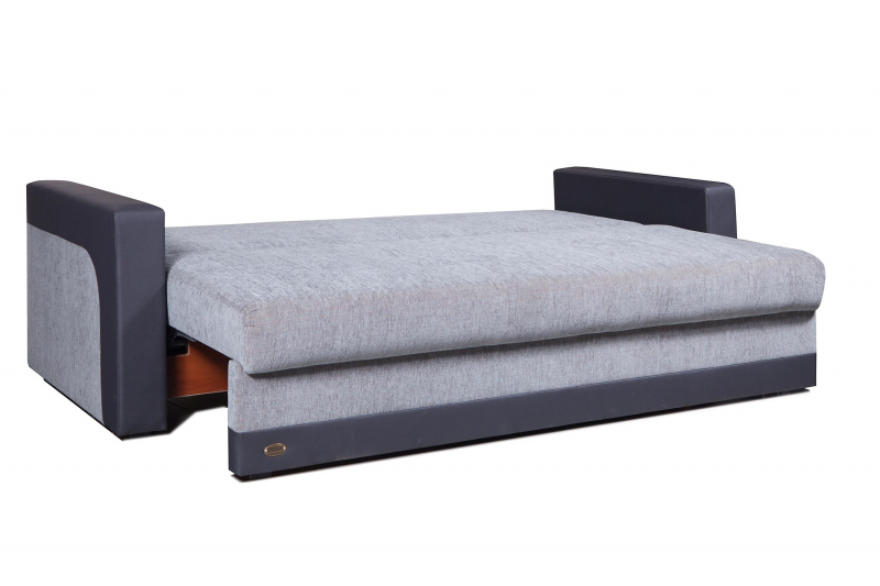 Модель оборудована просторным бельевым коробом. В широкий ящик под сиденьем можно складывать любые нужные вещи. Раскладывается диван с помощью механизма «Тик-Так». Модернизированная конструкция имеет выдвижной элемент, который приподнимает подвижную часть над полом. После чего спинка опускается на освободившееся пространство. В результате получается ровное и большое спальное место.