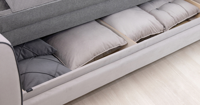 Удобный раздвижной диван-книжка Френсис с подушками и бельевым ящиком. Простой механизм трансформации - книжка с 0 стенкой - легко и быстро превращает диван в большое и комфортное спальное место без отодвигания от стены. Для этого сиденье с помощью потайной ручки выдвигается вверх и вперёд. Под диваном есть вместительный бельевой ящик для хранения постельных принадлежностей или вещей. Диван украшен подушками с контрастной обивкой, декоративным кантом, пуговицами и отстрочкой.Диван-кровать Френсис станет замечательным предметом мебели вашей гостиной комнаты или спальни. Благодаря лаконичному и стильному дизайну модель сможет легко вписаться практически в любой интерьер.