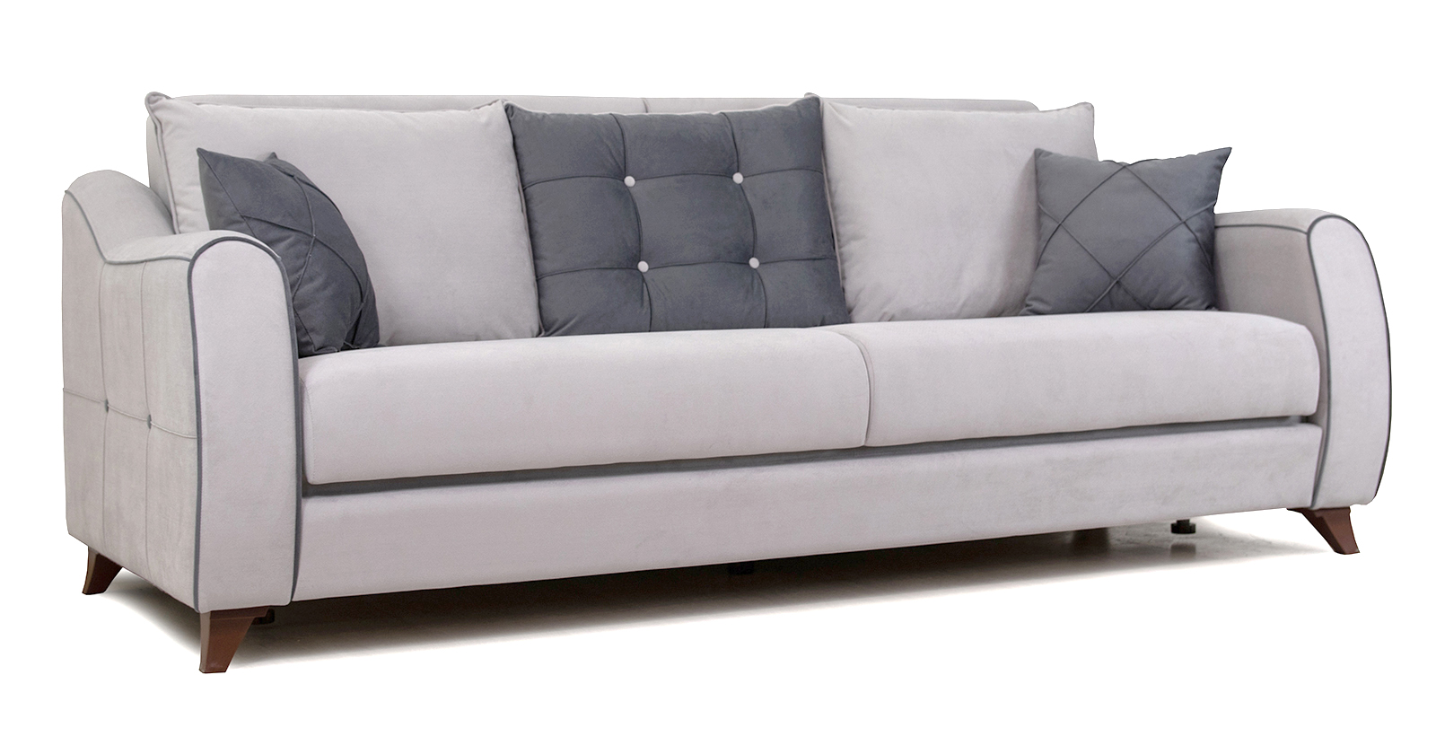 Удобный раздвижной диван-книжка Френсис с подушками и бельевым ящиком. Простой механизм трансформации - книжка с 0 стенкой - легко и быстро превращает диван в большое и комфортное спальное место без отодвигания от стены. Для этого сиденье с помощью потайной ручки выдвигается вверх и вперёд. Под диваном есть вместительный бельевой ящик для хранения постельных принадлежностей или вещей. Диван украшен подушками с контрастной обивкой, декоративным кантом, пуговицами и отстрочкой.Диван-кровать Френсис станет замечательным предметом мебели вашей гостиной комнаты или спальни. Благодаря лаконичному и стильному дизайну модель сможет легко вписаться практически в любой интерьер.