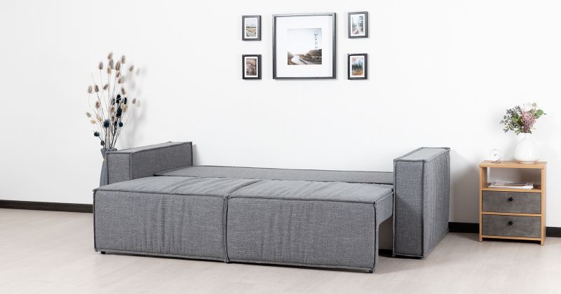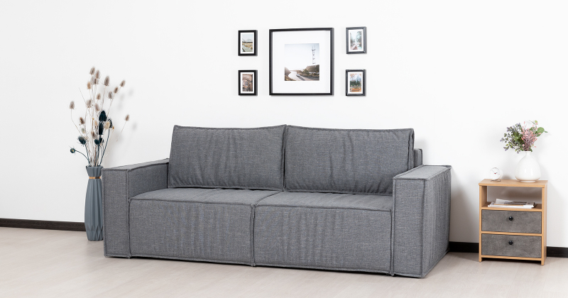 Стильный диван в трендовом лаконичном дизайне. Вывернутые швы подчеркивают геометрические формы дивана. Модная деталь – чехол со свободной посадкой и декоративными складками.Задняя сторона спинки выполнена в ткани основы.