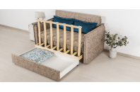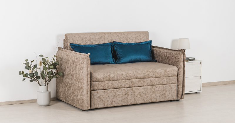 Модный компактный раскладной диванчик для гостиных или детских комнат. Простой и надежный механизм трансформации на каждый день обеспечит удобным спальным местом ребенка или подростка. Может использоваться в качестве гостевого спального места для взрослого, есть небольшой бельевой ящик. Опоры - цвет черный, круглые, высота 25 мм., выполнены из высококачественного пластика. Прочность конструкции ножек обеспечена ребрами жесткости и внутренним креплением под фурнитуру.