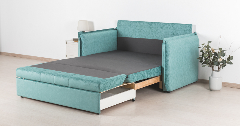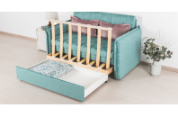 Модный компактный раскладной диванчик для гостиных или детских комнат. Простой и надежный механизм трансформации на каждый день обеспечит удобным спальным местом ребенка или подростка. Может использоваться в качестве гостевого спального места для взрослого, есть небольшой бельевой ящик. Опоры - цвет черный, круглые, высота 25 мм., выполнены из высококачественного пластика. Прочность конструкции ножек обеспечена ребрами жесткости и внутренним креплением под фурнитуру.