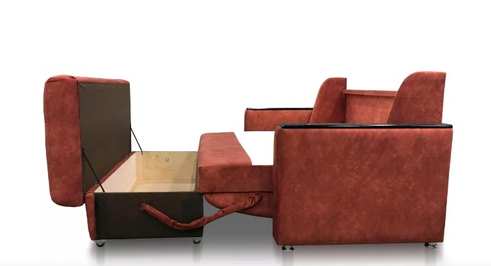 Диван-кровать с простым и надежным механизмом трансформации 'выкатной' . Каркас изготавливается из массива древесины хвойных пород и листовых материалов. Решетки каркаса крепятся методом шипования, тем самым обеспечивая надежность конструкции. Наполнение пружинный блок боннель и ппу повышенной комфортности. Имеется ящик для хранения принадлежностей.