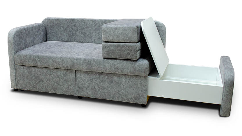 Диван Ксюша 2 - компактный и многофункциональный.Он рассчитан на ежедневное использование. В собранном виде занимает минимальную площадь. Высокая боковая спинка исключает неприятные соприкосновения со стеной. В разложенном виде образуется ровное спальное место. В комплект входят две приспинные подушки, которые можно использовать для увеличения длины спального места, чехлы на подушках съёмные, на молнии. Наличие двух ламинированных бельевых коробов позволит разместить постельные принадлежности. Модель подходит для небольших помещений, часто презентуется как детский вариант мягкой мебели.