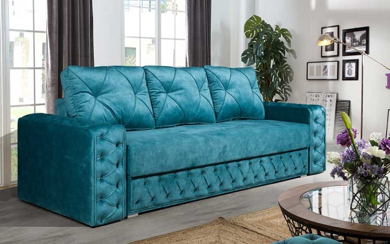 Мягкий диван «Версаль» идеально впишется в интерьер гостиной. Изделие отличается изысканным и утонченным дизайном.В диване использован механизм трансформации «Тик-так». При изготовлении дивана используются только качественные материалы обивки и наполнения. В основе конструкции – каркас из дерева.Мягкие элементы сидений дивана и спального места, выполнены на основе пружинного блока «Боннель».
