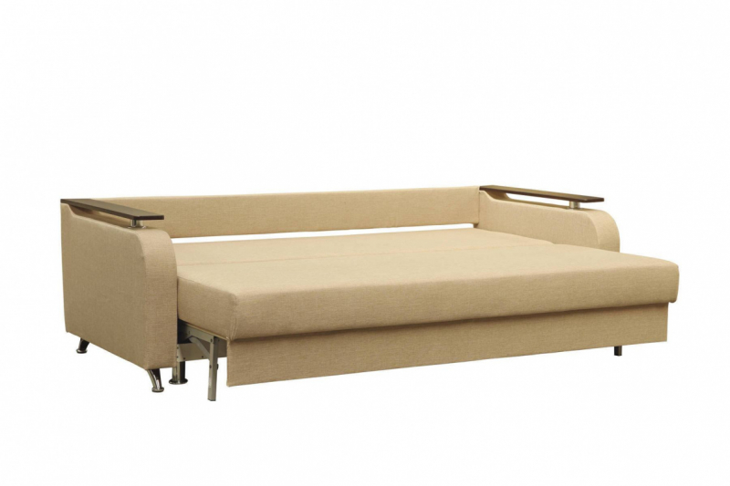 Диван в разложенном состоянии имеет спинку. Отсутствует зазор между спальным местом и спинкой и при этом не требуется устанавливать диван, на каком либо расстоянии от стены, а также передвигать диван при раскладке. Диван имеет современный механизм европейского производства. Этот новый оригинальный механизм позволяет легким движением, потянув сидение слегка вверх и на себя раскладывать диван с минимальным усилием. При этом отсутствует риск повреждения напольного покрытия колесиками или ножками. Диван имеет абсолютно ровное спальное место.. Наполнение подушек-холофайбер (шарики). Глубина сиденья 830мм, что позволяет использовать диван в качестве спального места не раскладывая его. Вместительный ящик для белья выполнен из ламинированного материала. Этот современный и элегантный диван имеет достаточно компактные размеры, которые позволяют максимально использовать жилое пространство в доме.