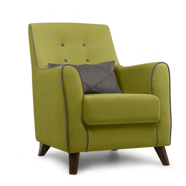 Очаровательное кресло Френсис станет вашим излюбленным местом для отдыха после трудного дня. Весь его внешний вид навевает уют и располагает к полноценному расслаблению. Спинка кресла имеет легкий наклон назад и соединяется с удобными подлокотниками для более комфортной посадки. Она декорирована имитацией стяжки с пуговицами. На сиденье расположена большая мягкая подушка.Прочный каркас изделия изготовлен из сочетания хвойного и березового бруса, фанеры и ДСП. Приспинная подушка в комплекте наполнена полиэфирным волокном. Опоры изготовлены из пластика.Декоративный кант на кресле, защипы на подушке-думке,пуговицы на спинке.