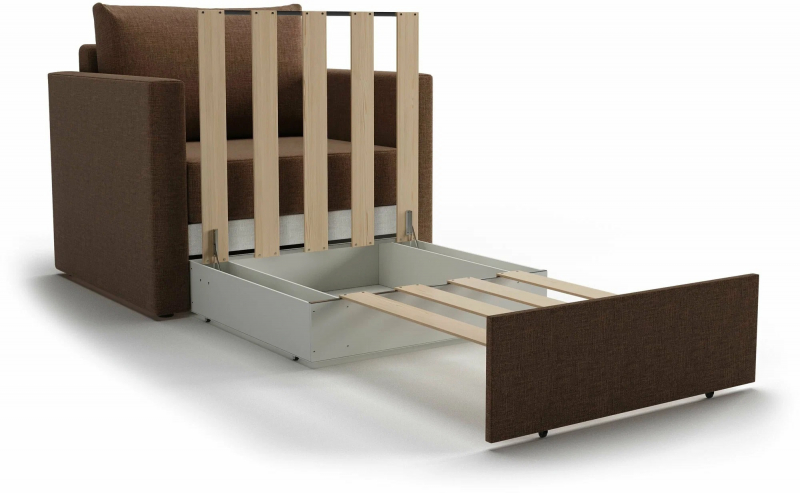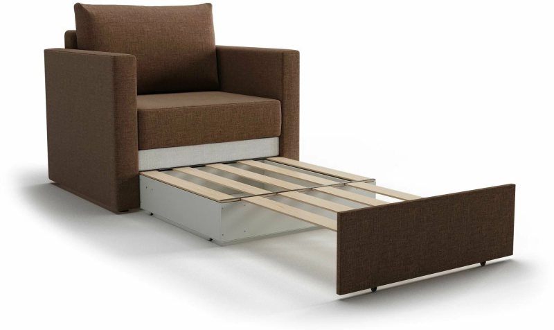 В этом кресле удачно сочетаются элегантный дизайн и функциональность. Выкатной механизм обеспечивает легкий доступ к спальному месту размером 70 на 200 см. Матрас из пенополиуретана и основание из ламелей обеспечивают ортопедический комфорт, благодаря чему сон на кресле-кровати Альфа станет настоящим удовольствием.