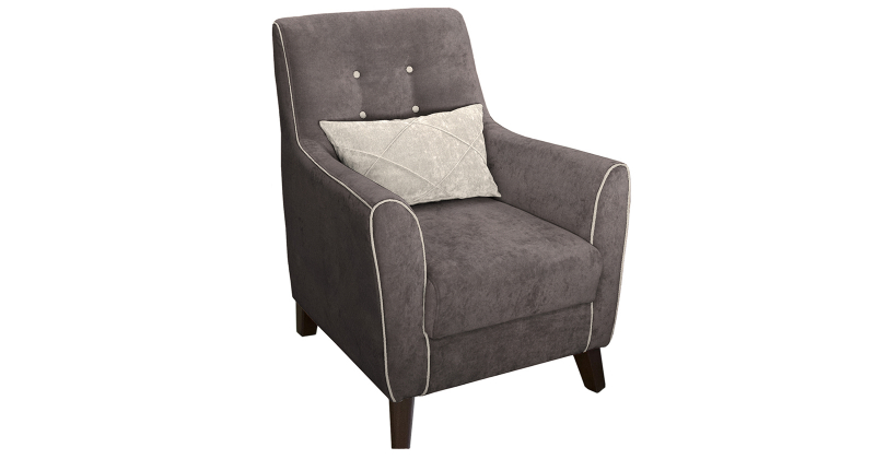Очаровательное кресло Френсис станет вашим излюбленным местом для отдыха после трудного дня. Весь его внешний вид навевает уют и располагает к полноценному расслаблению. Спинка кресла имеет легкий наклон назад и соединяется с удобными подлокотниками для более комфортной посадки. Она декорирована имитацией стяжки с пуговицами. На сиденье расположена большая мягкая подушка.Прочный каркас изделия изготовлен из сочетания хвойного и березового бруса, фанеры и ДСП. Приспинная подушка в комплекте наполнена полиэфирным волокном. Опоры изготовлены из пластика.Декоративный кант на кресле, защипы на подушке-думке,пуговицы на спинке.