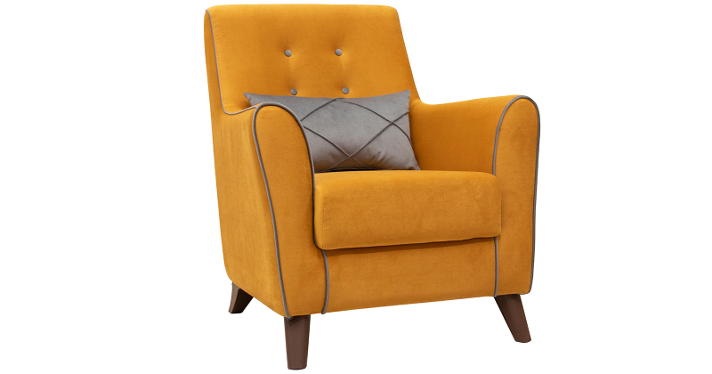Очаровательное кресло Френсис станет вашим излюбленным местом для отдыха после трудного дня. Весь его внешний вид навевает уют и располагает к полноценному расслаблению. Спинка кресла имеет легкий наклон назад и соединяется с удобными подлокотниками для более комфортной посадки. Она декорирована имитацией стяжки с пуговицами. На сиденье расположена большая мягкая подушка.Прочный каркас изделия изготовлен из сочетания хвойного и березового бруса, фанеры и ДСП. Приспинная подушка в комплекте наполнена полиэфирным волокном. Опоры изготовлены из пластика.Декоративный кант на кресле, защипы на подушке-думке,пуговицы на спинке.