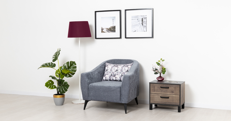 Компактное и удобное кресло на высоких металлических опорах – ваш яркий акцент в интерьере – или дополнение к дивану-книжке Наоми. Широкие подлокотники и мягкая приспинная подушка позволяют с комфортом отдохнуть в кресле с чашечкой чая и книгой или отвлечься от забот за просмотром фильма.