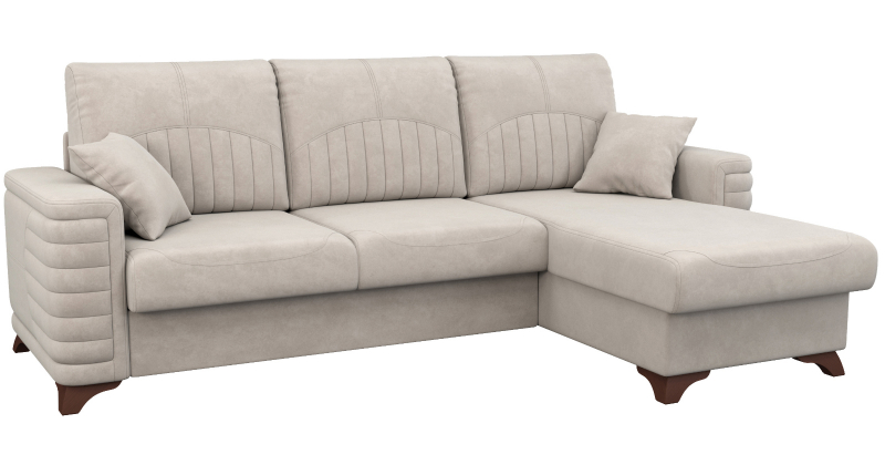 Стильный угловой диван Джейми привнесет в интерьер комфорт и уют. Модель украшена стеганными декоративными вставками на подлокотниках и подушках, а также декоративной строчкой по швам. Диван укомплектован тремя большими и двумя декоративными подушками.