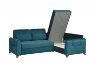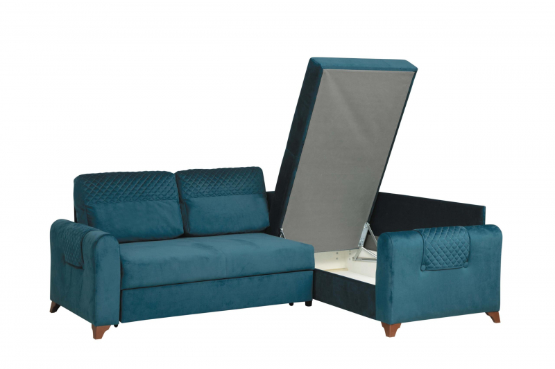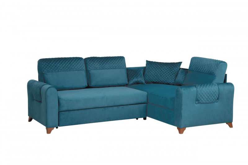 Диван - кровать угловой Элегант отлично подойдет для многих квартир. Изящный и элегантный угловой диван станет украшением вашего дома. Стеганые подушки и накладки на боковинах придают дивану оригинальность и подчеркивают его достойный внешний вид. Диван трансформируется в полноценное спальное место 2260х1570. Механизм дельфин скрыт под сиденьем и основан на выкатывании дополнительной платформы. Оттоманка оснащена механизмом подъема и имеет вместительный ящик для белья. Диван имеет универсальный угол, благодаря чему есть возможность размещения оттоманки как справа, так и слева.
