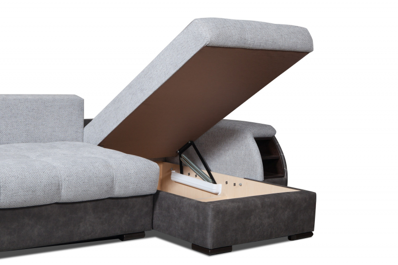 Особенность модели — необычные подлокотники, оснащенные небольшими полками. Туда удобно класть журналы, газеты, пульт от телевизора и прочие мелочи.