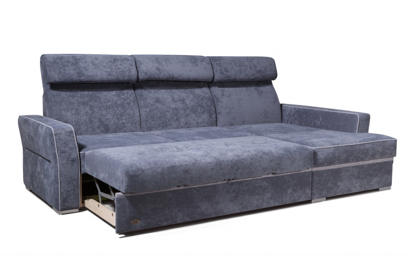 В ночное время диван может быть разложен в полноценную двуспальную кровать. Механизм трансформации — «Дельфин». Это простой и удобный способ преобразования мебели из положения «диван» в положение «кровать». В основании спального места расположен пружинный блок «Боннель». Он прочный, долговечный и удобный в использовании.
