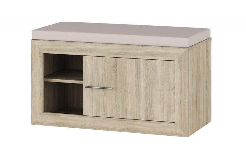 Компактная обувница с мягким сиденьем удобная и практичная в использовании. Мягкое сиденье имеет пенополиуретановый наполнитель. Обивка сидушки износостойкая и устойчивая к интенсивной эксплуатации. Корпус обувницы изготавливается из ЛДСП. Цвет корпуса и фасада может отличаться. Доступные варианты расцветки можно выбрать справа от товара. Внутри тумба для обуви оборудована полкой. Внешне, часть изделия выглядит как закрытый отсек с распашной дверкой, а часть в виде открытой полки, где удобно хранить чистящие средства для обуви.