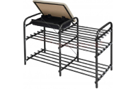 Удобная, компактная и функциональная этажерка для обуви с ящиком. Выполнена из металлических трубок с антикоррозионным напылением. Мягкое сиденье из прочного, устойчивого к истиранию и лёгкого в чистке материала – винилискожа. Встроенная полка для хранения принадлежностей по уходу за обувью. Три полки для размещения обуви. Этажерка позволяет поместить всю обувь компактно и удобно. Полка легко собирается, при необходимости её можно быстро разобрать. Пластиковые колпачки на ножках защищают поверхность пола от царапин.
