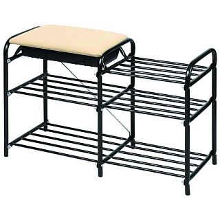 Удобная, компактная и функциональная этажерка для обуви с ящиком. Выполнена из металлических трубок с антикоррозионным напылением. Мягкое сиденье из прочного, устойчивого к истиранию и лёгкого в чистке материала – винилискожа. Встроенная полка для хранения принадлежностей по уходу за обувью. Три полки для размещения обуви. Этажерка позволяет поместить всю обувь компактно и удобно. Полка легко собирается, при необходимости её можно быстро разобрать. Пластиковые колпачки на ножках защищают поверхность пола от царапин.