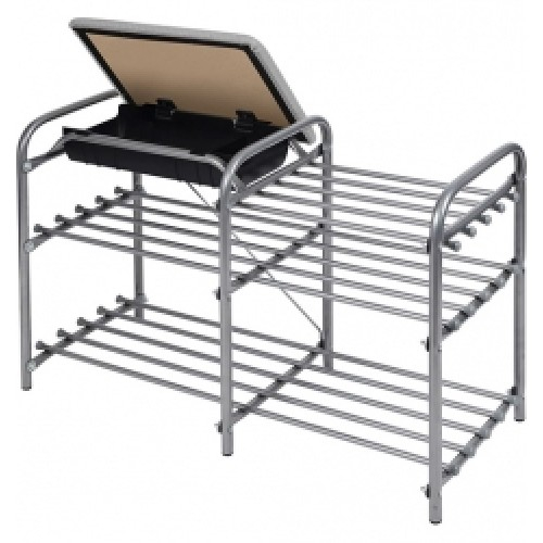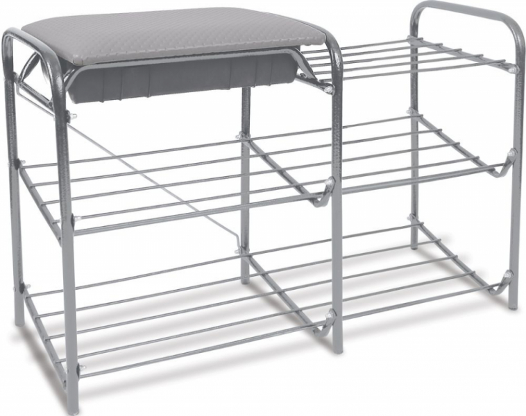Удобная, компактная и функциональная этажерка для обуви с ящиком. Выполнена из металлических трубок с антикоррозионным напылением. Мягкое сиденье из прочного, устойчивого к истиранию и лёгкого в чистке материала – винилискожа. Встроенная полка для хранения принадлежностей по уходу за обувью. Три полки для размещения обуви. Этажерка позволяет поместить всю обувь компактно и удобно. Полка легко собирается, при необходимости её можно быстро разобрать. Пластиковые колпачки на ножках защищают поверхность пола от царапин.