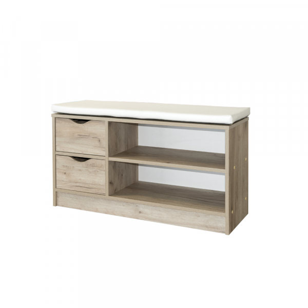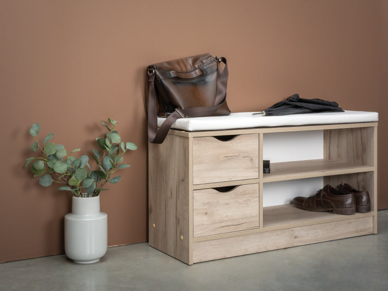 Лайт 10.82 практичная тумба для небольшой прихожей или тамбура. Просторное мягкое сиденье прекрасно подойдет для комфортного переобувания. Дополнительно тумба оснащена двумя открытыми нишами для размещения обуви и двумя выдвижными ящиками для хранения средств для обуви, щеток и других мелочей.